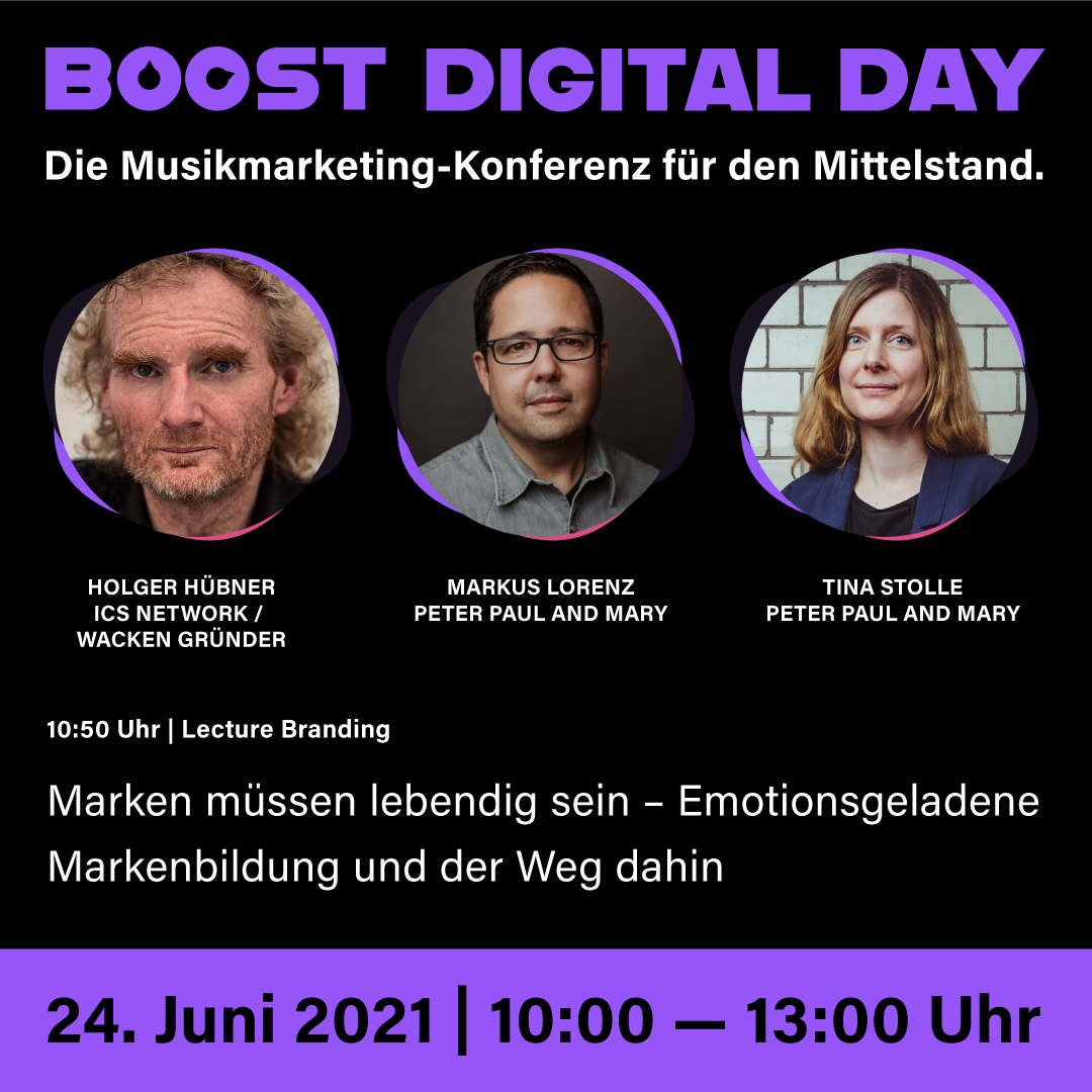 Am 24. Juni 2021 startet nun der 1.Boost Digital Day bei dem in acht prägnanten und kostenlosen Panel-Sessions über insgesamt drei Stunden verschiedenste Themen und Aspekte beleuchtet werden: Marke, Leads, Targets, Legal, Festivals, hybride Events und zufriedene Mitarbeiter!