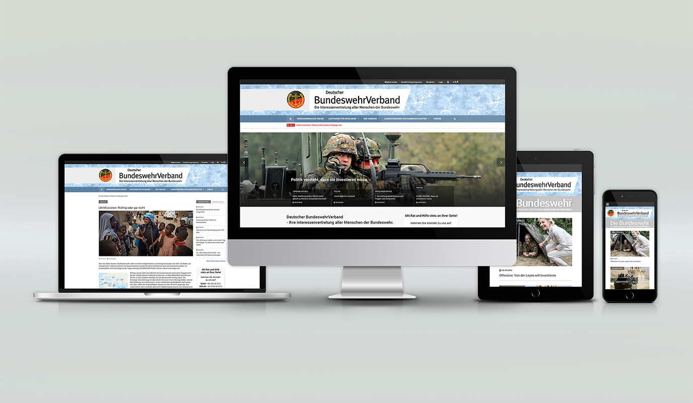 Im Auftrag des Deutschen Bundeswehr Verbands haben wir den neuen Internetauftritt der größten deutschen Interessenvertretung für Angehörige der Bundeswehr realisiert. Die durchgeführten Marken- und Website-Workshops stellten die Basis für die Weiterentwicklung des Erscheinungsbildes dar. Neben der Modernisierung stand die Neustrukturierung der zu kommunizierenden Inhalte im Fokus. Die Vielschichtigkeit der Interessen und Informationen eines so großen…