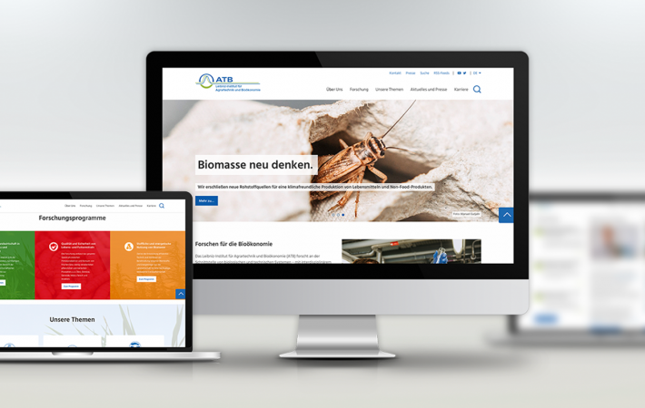 Entwicklung des Inhaltskonzepts, des Navigationskonzepts, des grundlegenden Seitenaufbaus und des Screen- /UX-Designs für die neue Website des Leipnitz Instituts ATB in Postdam.